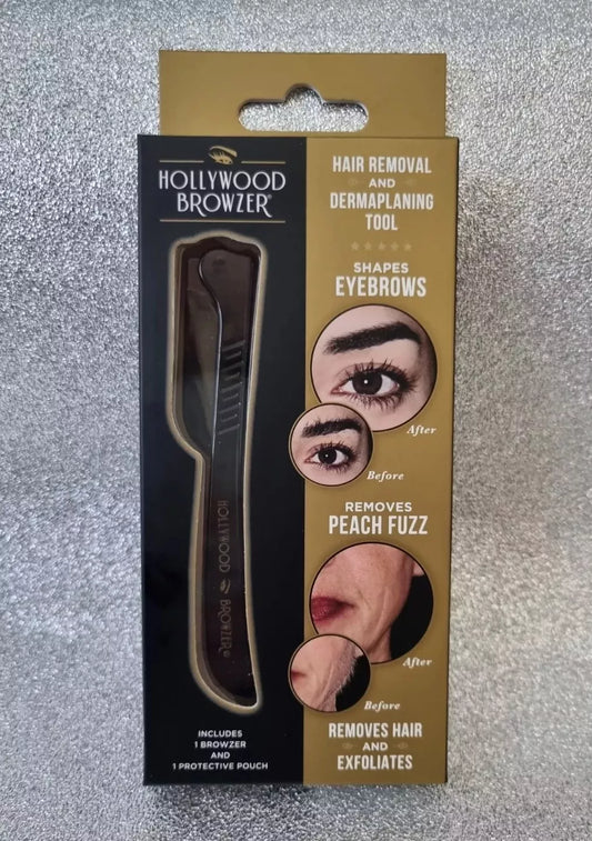 Hollywood Browzer Dermaplaning Face Blade for Woman (Protective Pouch Included) for Eyebrow Shaping, Removing Unwanted Hair and Dermaplaning Exfoliation Single Black