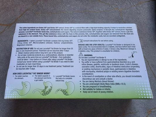 LUCOVITAL FAT BINDER Fat & Carb Blocker Weight Loss 30 Tablets 5-15 Days Supply