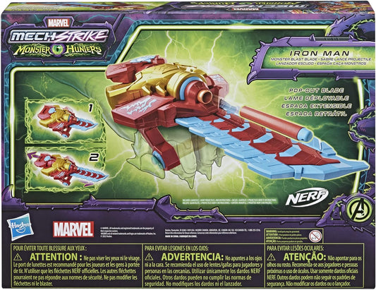 Marvel Avengers Mech Strike Monster Hunters Iron Man Monster Blast Blade Roleplay Toy with 3 NERF Darts