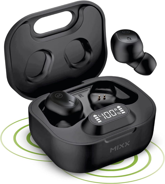 MIXX StreamBuds Dots - TWS, true wireless earbuds, Bluetooth in Ear Headphones for Music and calls -wireless charge case, 3 EQs -Music, Bass Boost and voice - Up to 28 hours playtime (Black)