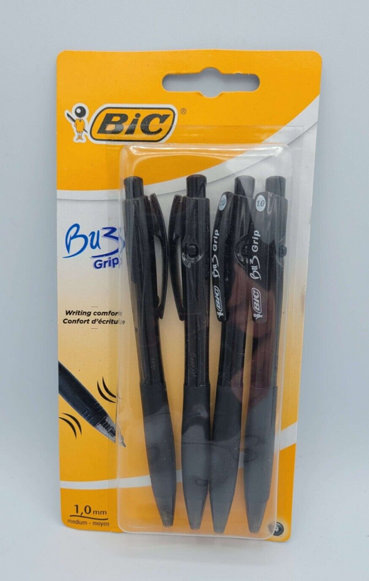 BIC BU3 Grip 1.0mm Black Retractable Ball Pens | 4 Pack Stationery