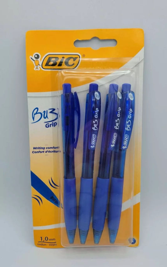 BIC BU3 Grip 1.0 Blue Retractable Ball Pen 4 Pack Stationery