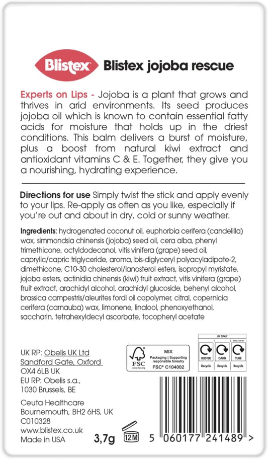 Blistex Jojoba Rescue Lip Balm, Helps Moisturise and Hydrate Lips, with Jojoba Oil, Multipack 3.7g