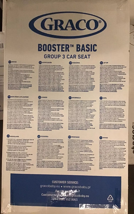 Graco Booster Basic Group C Backless Sapphire Booster Car Seat 6 - 12 Years