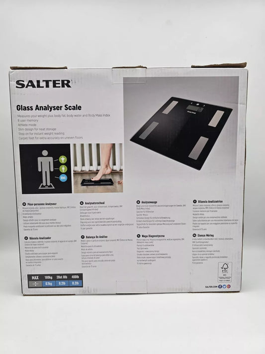 Salter Bathroom Fitness Scale Body Analyser Weight BMI Fat/Water Glass Black