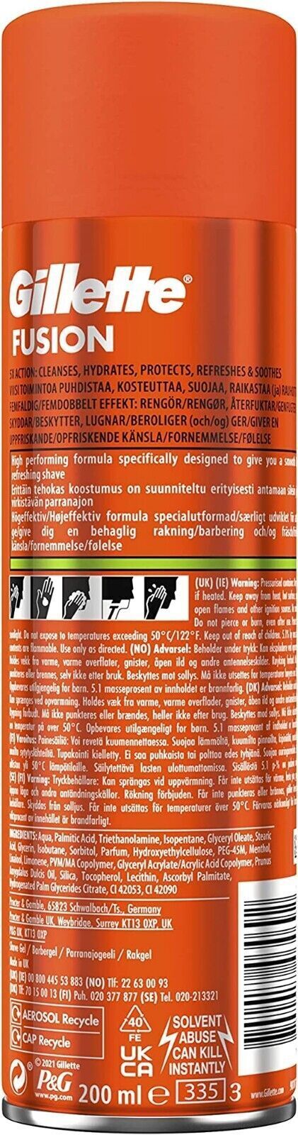 Gillette Fusion 5X Action Sensitive Men's Shaving Gel With Almond Oil 200ml