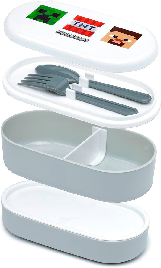 Minecraft Creeper Stacked Bento Box Lunch Box with Fork & Spoon