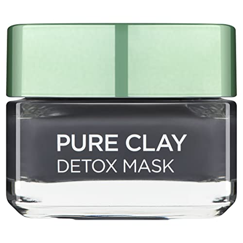 L'Oreal Paris Pure Clay Black Charcoal Detox Face Mask, Deep Cleansing Skin Care All Skin Types 50 Ml