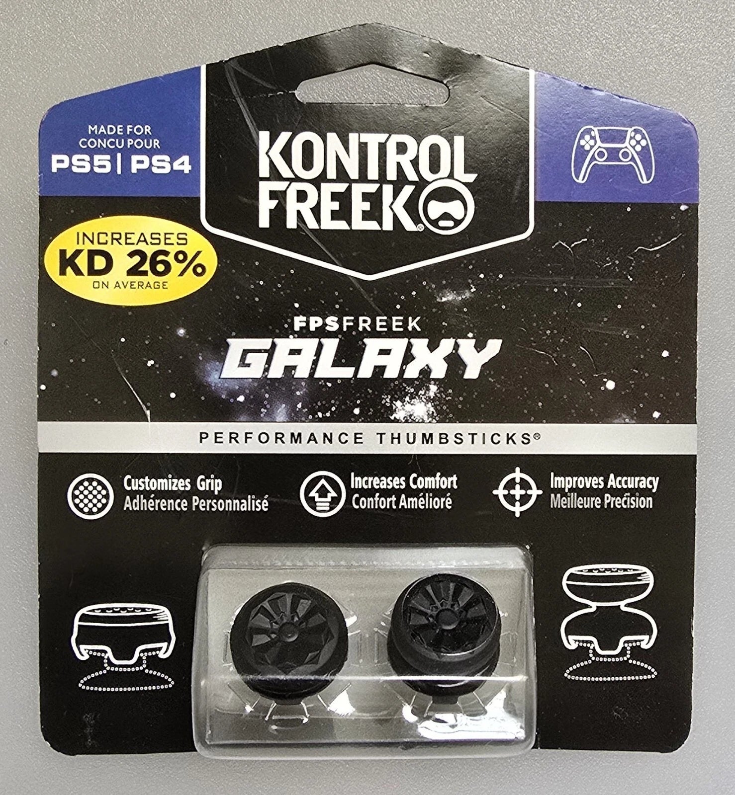 Elevate your gaming experience with Kontrol Freek FPS Freek Galaxy Thumbsticks, designed specifically for precision and comfort on your Sony PlayStation 4 and PlayStation 5 controllers. The sleek black design adds a touch of style to your gaming setup, complementing any controller aesthetic. Crafted for durability and performance, these thumbsticks are compatible with a range of PS5 and PS4 controllers, ensuring a seamless integration with your existing gear. The 4-prong configuration is engineered to provide enhanced accuracy and a satisfying tactile response, allowing for an immersive gaming session.