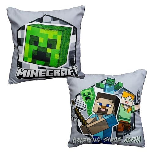 Character World Minecraft Official Gaming Square Cushion | Circle Design Reversible 2 Sided Pillow Brands | Perfect for the Bedroom or on the Sofa 40cm x 40cm