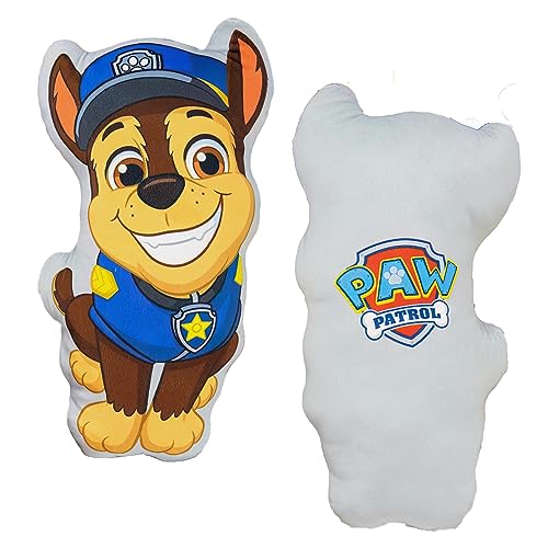 Character World Official Paw Patrol Shaped Chase Dog Cushion, Super Soft Reversible 2 Sided, Grin Design Pillow, Perfect for the Bedroom or on the Sofa