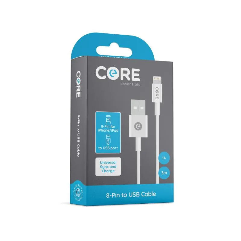Core 8-PIN to USB 3M Lightning Cable In WHITE