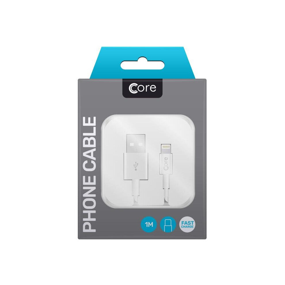 Core Lightning to USB Cable in Case 1M WHITE Fast Charge
