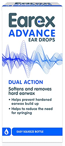 - The dual action formula of Earex Advance earwax removal drops softens and removes hard earwax.