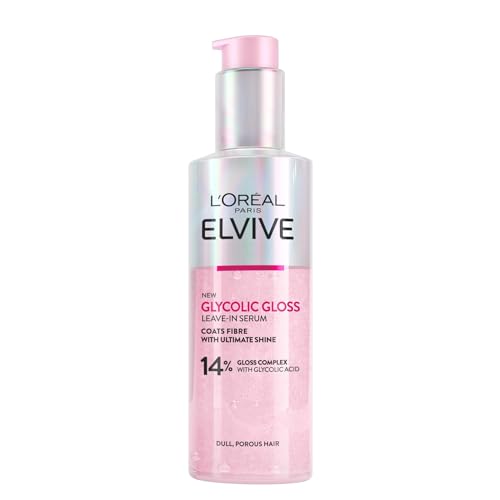 L'Oreal Paris Elvive Glycolic Gloss Leave-In Serum, With Gloss Complex and Glycolic Acid, Fills and Seals Hair Fibres, For Long-lasting Smooth & Shiny Hair, Ideal for Dull Hair, 150ml