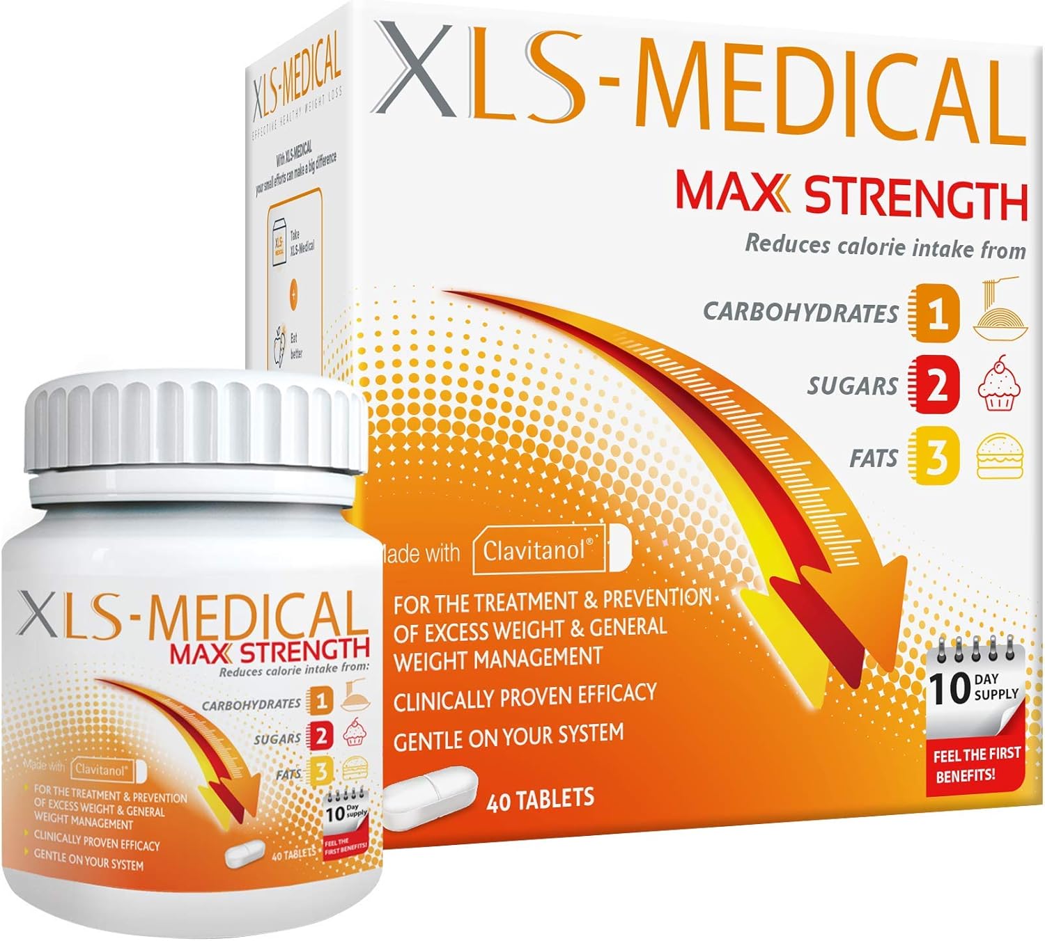 XLS Medical Max Strength Tablets - Reduce Calorie Intake from Carbohydrates, Sugars and Fats - Weight Loss Aid - 40 Tablets, 10 Days Treatment